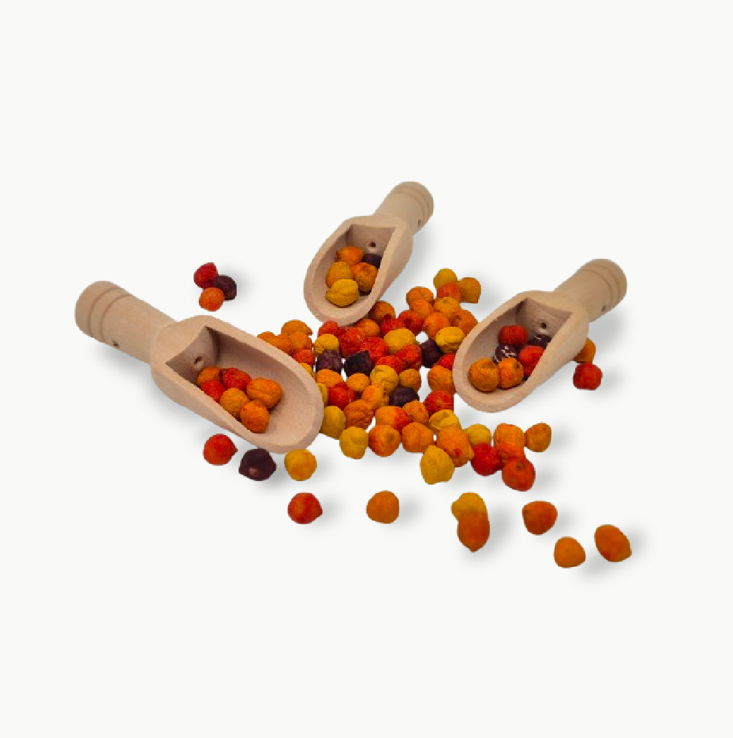 Pisike puidust kühvel, millega on tore riisi ja herneid siit sinna liigutada.